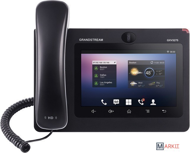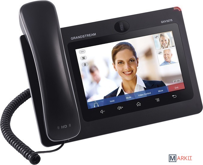 IP видеотелефон Grandstream GXV3275, построенный на базе популярнейшей мобильной платформы Android 4.2, успешно сочетает в себе возможности 6-линейного корпоративного IP телефона с терминалом видеоконференций. В качестве платформы видеоконференций могут выступать как свободные или проприетарные решения на основе протокола SIP, так и такие массовые платформы, как Skype, Google Hangouts и другие.