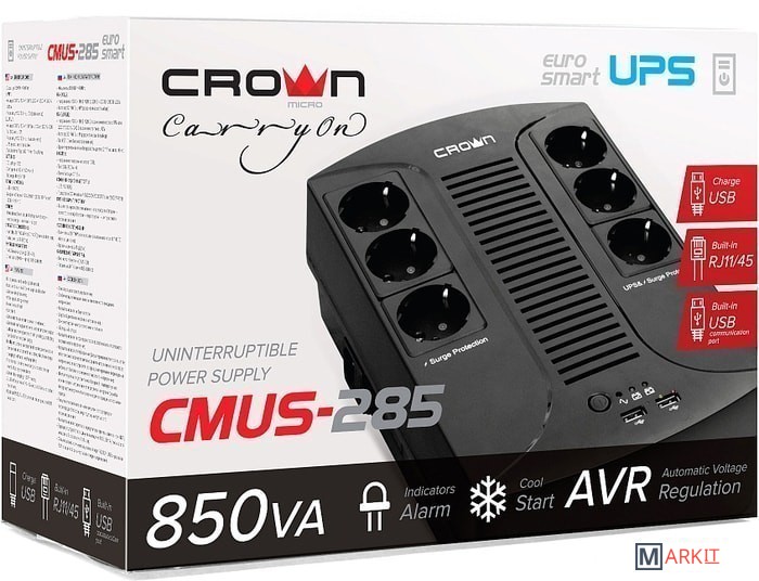 Markit » Источники бесперебойного питания » Источник бесперебойного питания CrownMicro CMUS-285 Euro Smart