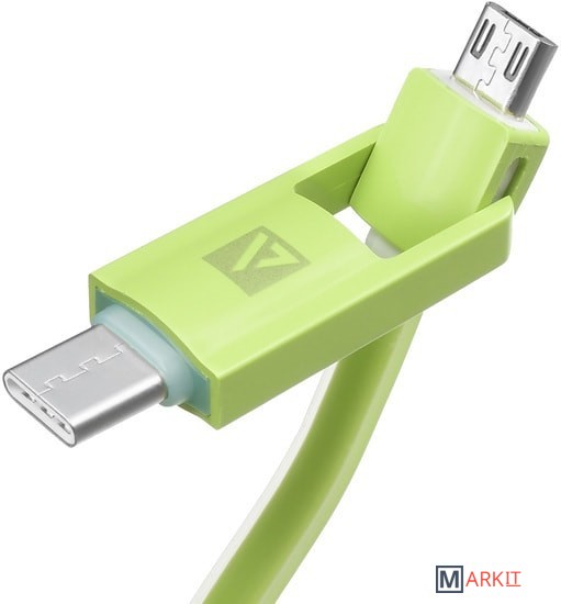 Cменный коннектор 2-в-1 позволяет подключать устройства с Micro USB или Type-C одним кабелем.