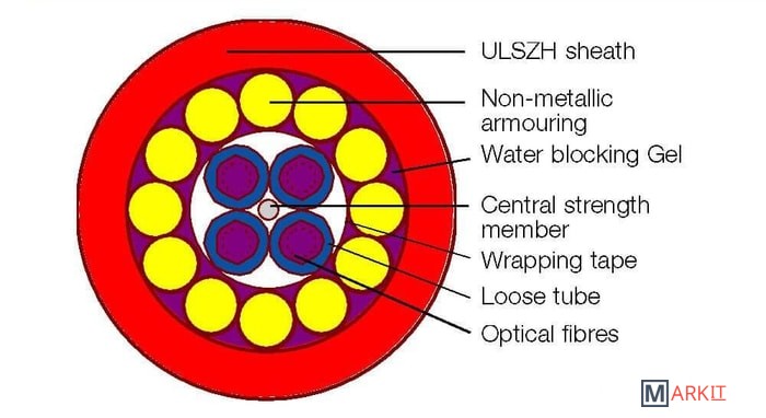 Оптоволоконный кабель, 4-волоконный, 50/125 OM2.Максимальная потеря 3.5/1.0 дб/км (850/1300 нм).Пропускная способность 500/500 (850/1300 нм).