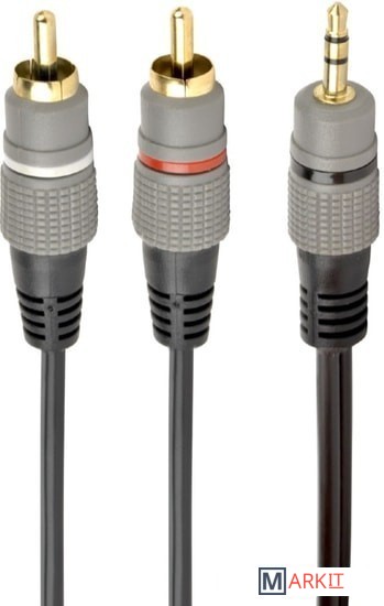 Аудио кабель 3.5 мм стерео папа на "тюльпан-папа" x 2 шт (RCA)