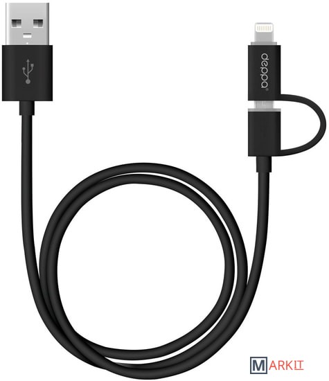 Markit » Кабели, адаптеры, разветвители » Кабель Deppa 2 в 1: micro USB, Apple 8-pin 72204