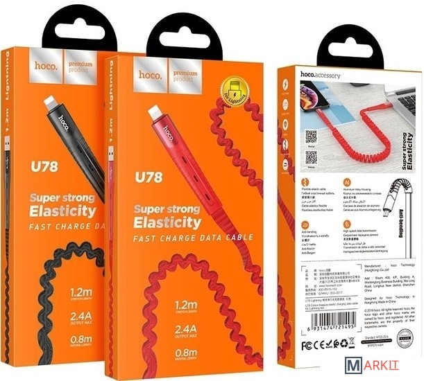 Markit » Кабели, адаптеры, разветвители » Кабель Hoco U78 Cotton Treasure USB - Lightning (1.2 м, черный)
