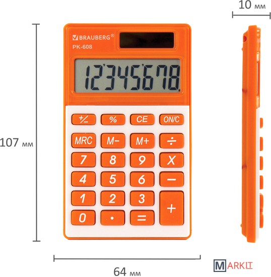 Markit » Калькуляторы » Калькулятор BRAUBERG PK-608-RG 250522 (оранжевый)