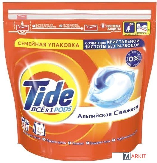 Markit » Средства для стирки и ухода за бельем » Капсулы для стирки Tide Все в 1 Pods Альпийская свежесть (45x24.8 г)