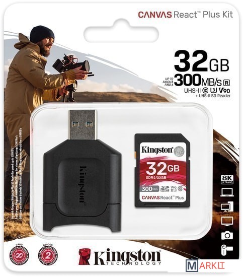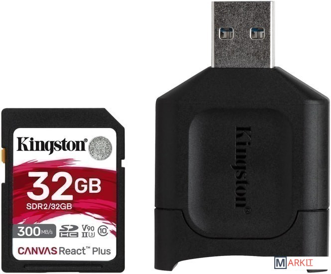 Markit » Карты памяти » Карта памяти Kingston Canvas React Plus SDHC 32GB (с кардридером)