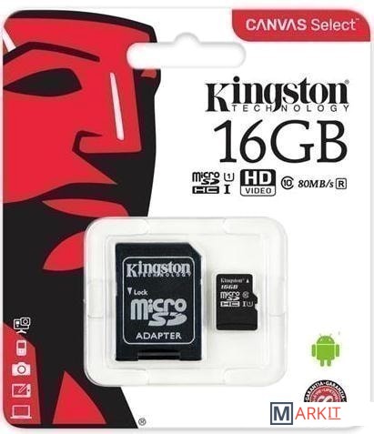 Markit » Карты памяти » Карта памяти Kingston Canvas Select SDCS/16GB microSDHC 16GB (с адаптером)