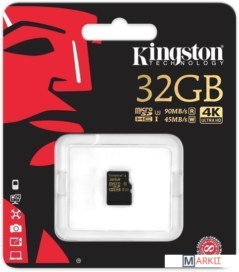 Markit » Карты памяти » Карта памяти Kingston Gold microSDHC UHS-I (Class 3) U3 32GB [SDCG/32GBSP]