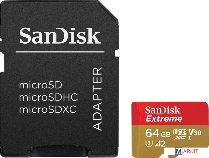 Markit » Карты памяти » Карта памяти SanDisk Extreme microSDXC SDSQXAH-064G-AN6MA 64GB (с адаптером)