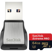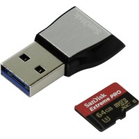 Карта памяти SanDisk Extreme Pro microSDXC 64GB + кардридер [SDSQXPJ-064G-GN6M3] Код: 96059