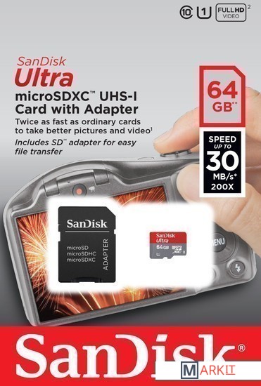 Markit » Карты памяти » Карта памяти SanDisk microSDXC UHS-I (Class 10) 64GB + адаптер (SDSDQUI-064G-U46)