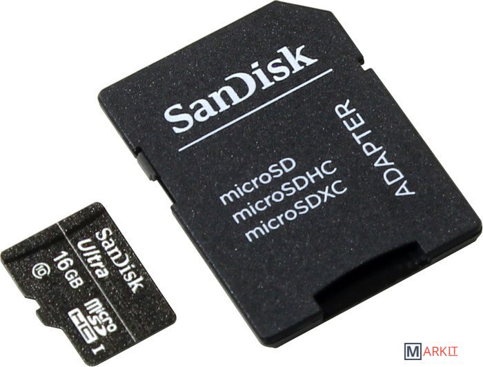 Markit » Карты памяти » Карта памяти SanDisk Ultra microSDHC 16GB UHS-I + адаптер [SDSDQL-016G-R35A]