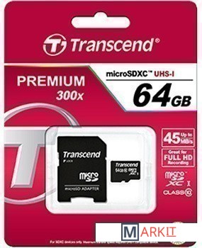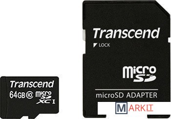 Markit » Карты памяти » Карта памяти Transcend microSDXC Premium Class 10 64GB + адаптер [TS64GUSDXC10]