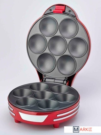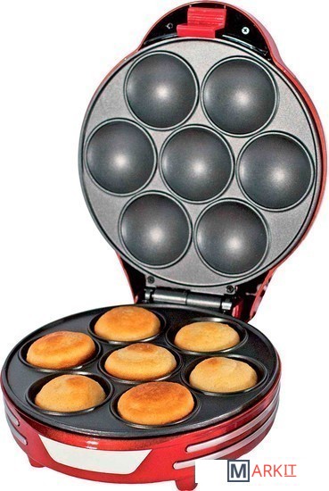 Прибор для приготовления маффиннов, как и все устройства линии Party Time, выполнен в ретро-дизайне. Благодаря стилистике 50х годов прибор станет яркой деталью антуража вашей вечеринки.Конструкция прибора позволяет печь одновременно семь пышных кексов. Благодаря антипригарному покрытию пластин, кексы не припекутся к форме.Готовить с 188 Muffin&Cupcakes maker очень просто. Жидкое тесто для кексов подготовьте заранее. Включите прибор в сеть. Примерно через 3 минуты прибор нагреется и будет готов к работе, об этом сообщит световой индикатор на крышке. Аккуратно заливайте тесто в формы. Помните, что в процессе приготовления кексы увеличатся в объеме, не заполняйте формочку целиком. Закрыв крышку, ждите от 6 до 8 минут. Готовые кексы легко извлекаются из формы. Вам останется только полить их сливками, кремом, украсить ягодами.Прибор можно хранить в вертикальном положении, так он не займет много места на вашей кухне.Размер маффинов 5,5 см.