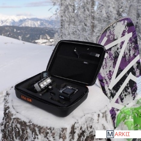 В кейс поместится:– водонепроницаемый корпус– запасной аккумулятор– внешняя батарея Battery Bac Pac– внешний дисплей LCD Touch Bac Pac– пульт для GoPro с ремешком на руку– кармашек для кабелей, переходников и прочих аксессуаров– поплавок