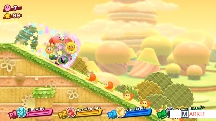 Спасите Царство грез в игре Kirby Star Allies! Кирби впервые появится в HD-качестве на консоли Nintendo Switch! И в этот раз он будет не один. Заручитесь поддержкой врагов и соберите команду из четырех персонажей.В Kirby Star Allies появятся новые способности к копированию! Дайте волю своему воображению со способностью Художник и заманивайте врагов в свои сети со способностью Паук! Сочетайте способности к копированию с другими элементами, например ветром, водой, огнем и электричеством, затем передавайте эти способности своим помощникам, чтобы выполнять разрушительные атаки или разгадывать головоломки.