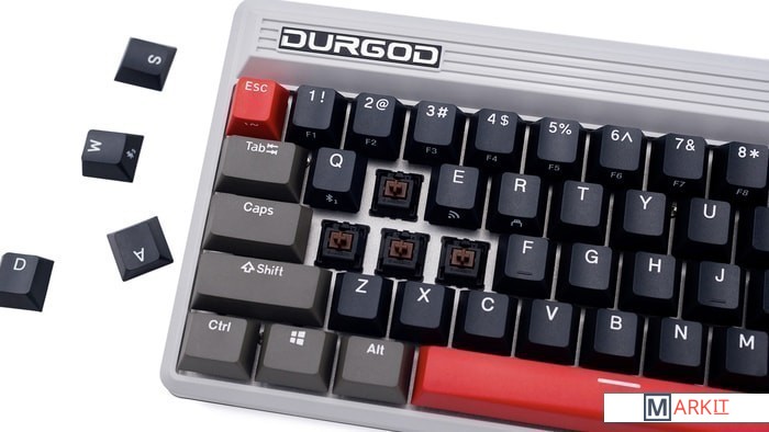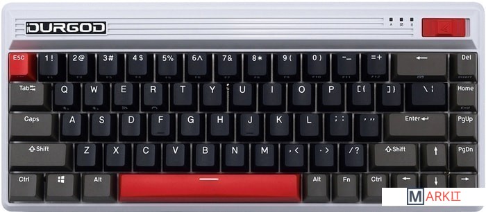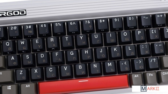 КЛАВИАТУРА БЕЗ КИРИЛЛИЦЫТип: линейныйСила нажатия: 45 грамм (средние)Длина пути: 3.7 мм (1.9 мм до срабатывания)Помимо подключения через стандартный кабель USB клавиатура может работать в одном из двух беспроводных режимов — Bluetooth 5.0 или беспроводном соединении 2.4G, обладающем меньшей, по сравнению с Bluetooth, задержкой. Переключение между режимами осуществляется с помощью специального слайдера в верхней правой части. Благодаря беспроводному подключению вы также можете подключить клавиатуру к устройствам на iOS или Android.Два кабеля в комплекте - Вы можете использовать как USB Type-C, так и старый добрый USB Type-A.Мультимедиа и дополнительные FN функции - Клавиатура поддерживает сочетания клавиш для регулировки громкости и управления музыкой. Также имеется возможность отключить кнопку Windows.Durgod Zeus Engine позволяет создавать макросы. Можно создать свои мультимедиа, функциональные макросы и многое другое. ПО не поддерживается на Mac OS.Прочные регулируемые ножки позволят немного приподнять клавиатуру и изменить её угол наклона для более комфортной печати, а их прорезиненное дно не даст клавиатуре сдвинуться с места.Функция Full N-key Rollover по USB (NKRO) - Позволяет нажимать одновременно неограниченное количество клавиш. Для печати идеально подойдет как 6KRO, так и NKRO, независимо от вашей скорости. Для игр NKRO будет плюсом и неважно, нажимаете ли вы больше 6 кнопок или нет, поскольку, играя в любую игру, вы можете случайно нажать пару лишних клавиш и из-за этого клавиатура может не среагировать на нажатие, которые вы хотели совершить изначально. Осторожно, старые BIOS-ы могут не реагировать на клавиатуру из-за NKRO.