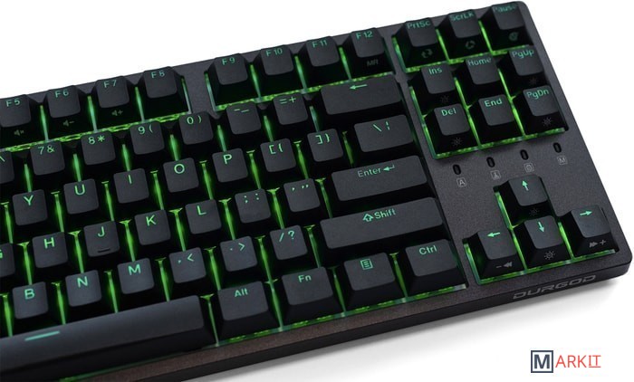 КЛАВИАТУРА БЕЗ КИРИЛЛИЦЫТип: линейныйСила нажатия: 45 грамм (легкие)Длина пути: 4 мм (2 мм до срабатывания)Фирменная подсветка Nebula поддерживает 16.8 млн. цветов и множество регулируемых режимов подсветки, а особо искушённые пользователи откроют для себя широкие возможности кастомизации благодаря ПО Durgod Zeus Engine.Клавиатура поддерживает сочетания клавиш для регулировки громкости и управления музыкой. Также имеется возможность отключить кнопку Windows.Два кабеля в комплекте - Вы можете использовать как USB Type-C, так и старый добрый USB Type-A.Durgod Zeus Engine позволяет создавать макросы. Можно создать свои мультимедиа, функциональные макросы и многое другое. ПО не поддерживается на Mac OS.Канавки для укладки кабеля - Расположены с обратной стороны клавиатуры и позволяют выводить кабель в трёх направлениях — слева, справа и посередине.Двойные регулируемые ножки предоставляют целых три варианта угла наклона клавиатуры для более комфортной печати, а их прорезиненное дно не даст клавиатуре сдвинуться с места.Функция Full N-key Rollover по USB (NKRO) - Позволяет нажимать одновременно неограниченное количество клавиш. Для печати идеально подойдет как 6KRO, так и NKRO, независимо от вашей скорости. Для игр NKRO будет плюсом и неважно, нажимаете ли вы больше 6 кнопок или нет, поскольку, играя в любую игру, вы можете случайно нажать пару лишних клавиш и из-за этого клавиатура может не среагировать на нажатие, которые вы хотели совершить изначально. Осторожно, старые BIOS-ы могут не реагировать на клавиатуру из-за NKRO.