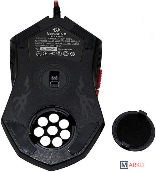 Грузы  (8 съемных грузиков (по 2,5 г каждый) размещается на дне мыши)