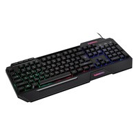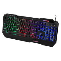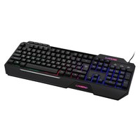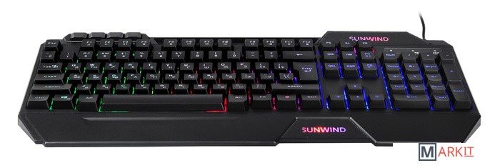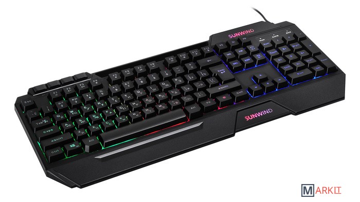 Клавиатура SunWind SW-K515G представляет собой стильный проводной вариант для геймеров профессиональных и начинающих. Ее отличает яркость, динамичность дизайна, индивидуальность и узнаваемость.Отличительные особенности:полный размер;наличие накладок для удобного расположения кистей рук во время игры;дополнительные мультимедийные кнопки;длинный кабель подключения.Корпус выполнен в черном цвете, имеет стильный молодежный дизайн с острыми углами и ребрами жесткости, с четкой геометрией. Все современные модные тенденции нашли свое воплощение. Зональная подсветка придает привлекательности. Ударопрочный пластик подчеркивает качество сборки. Детали плотно прилегают друг к другу, не оставляя лишних зазоров.Механический тип устройства клавиш гарантирует быстрый отклик и плавное нажатие. Металлические переключатели и пружины повышают надежность конструкции. Длительная работа не вызывает мышечного утомления. Цвет букв прозрачный, через них проникает свет от подсветки и выгодно выделяет их на общем фоне. Эргономика продумана до мелочей.