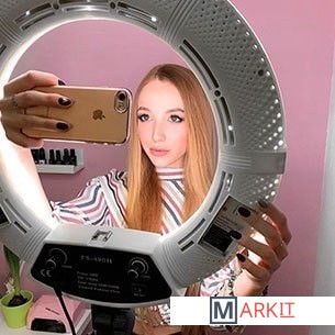Лампа абсолютно универсальна и подойдет для любого бьюти специалиста, на модель Premium 480 можно делать отличные фото (визажист, парикмахер и тд) а так же работать под лампой (лэшмейкер, мастер перманентного макияжа, косметолог).Мощный световой поток — 9600 люмен, позволяет ярко освещать объекты с дальних расстояний (6-8 метров). Такой лампы достаточно, чтобы осветить большую фотозону с несколькими людьми или полностью рабочую зону визажиста, без использования дополнительного освещения.Теплый | нейтральный | холодный свет и регулировка яркости – необходимые функции для всех, кто создает портфолио. Добивайтесь необходимых эффектов в работе и во время съемки просто сменив цветовую температуру освещения!Кольцевая лампа имеет очень надежные крепления, что позволяет абсолютно безопасно наклонять ее над клиентом и фиксировать в горизонтальном положении (под углом 90 градусов).Удобный цифровой дисплей для регулировки яркости и цветовой температуры.Кольцевая лампа обеспечивает равномерное освещение, которое при необходимости можно направить в любую сторону. Также лампа совместима с любыми смартфонами, фото/видеокамерами и планшетами и может использоваться как большая лампа на штативе для селфи. Кольцевой свет лампы интересно подчеркивает фактуру кожи, идеально передает оттенки макияжа и цвет волос, лампа не нагревается и макияж не «плывет». Фотографии получаются потрясающими даже без обработки.Комплектация:лампа, штатив, сумка, сетевой кабель, крепление для телефона, зеркало, гибкое крепление, селфи пульт.