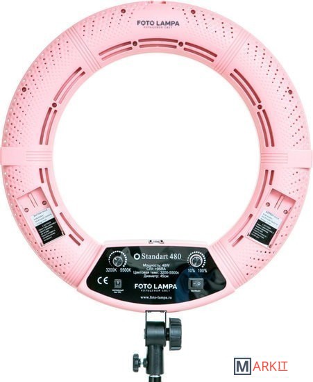 В лампе FS-480 используются самые современные LED светодиоды, которые меняют свет от теплого к холодного без смены передних накладок. Срок службы светодиодов более 50000 часов. Свет не мерцает при фото или видео съемке.Крепление "башмак" для удобной фиксации фотоаппарата на лампе. Там же можно присоединить крепление для телефона или круглое косметическое зеркало.Удобная ручка для фиксации лампы под удобным углом для более удобной работы.Матовый пластиковый светорассеиватель придает свету более мягкое свечение, в результате получается равномерный свет без полос и пятен.Мощность 48 ватт и два удобных диммера для регулировки яркости и цветовой температуры позволят настроить нужный оттенок свечения.Оптимальная мощность лампы, позволяет делать идеальные фото на расстоянии около от 0,5 до 1,5 метров. Отлично подходит для Визажитов, Стилистов, Бровистов, Мастеров маникюра.Комплектация:лампа, штатив, сумка, сетевой кабель, крепление для телефона, зеркало, гибкое крепление, селфи пульт.