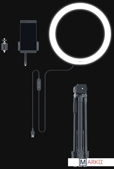 | Комплектация | 1 х кольцевой свет с прикрепленным кабелем и пультом управления1 х штатив1 х держатель для мобильного телефона1 х крепление на шаровой головке |
