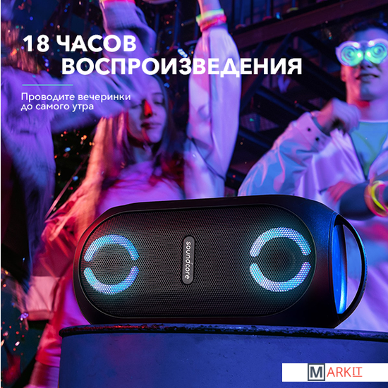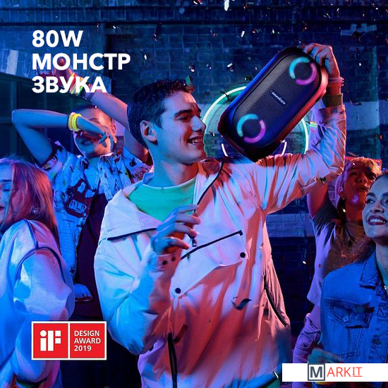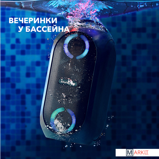 Основные особенности:- степень влагозащиты IPX7- настраиваемая подсветка- расширенные возможности благодаря фирменному приложению (SoundCore App)- радиус действия до 20 метров