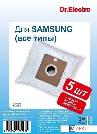 Markit » Аксессуары для пылесосов, пароочистителей » Комплект одноразовых мешков Dr.Electro для Samsung