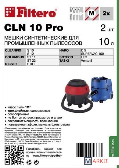 Мешки для промышленных пылесосов Filtero CLN 10 Pro, 3-х слойные, произведены из синтетического микроволокна MicroFib®. Прочность синтетических мешков Filtero CLN 10 Pro превосходит любые бумажные мешки-аналоги, даже если это оригинальные бумажные мешки всемирно известных марок. Вы можете быть уверены: заклепки, гвозди, шурупы, битое стекло, острые камни и пр. не смогут прорвать мешки Filtero Pro. Мешки Filtero Pro не боятся влаги, и даже вода, попавшая в мешок, не помешает вам произвести качественную уборку!Мешки Filtero Pro предназначены для уборки пыли классов «L» и «М».
