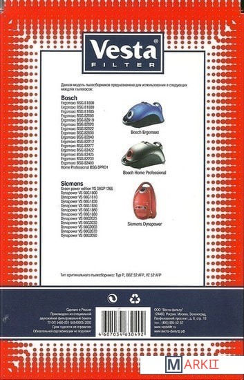 Markit » Аксессуары для пылесосов, пароочистителей » Комплект одноразовых мешков Vesta Filter BS 03