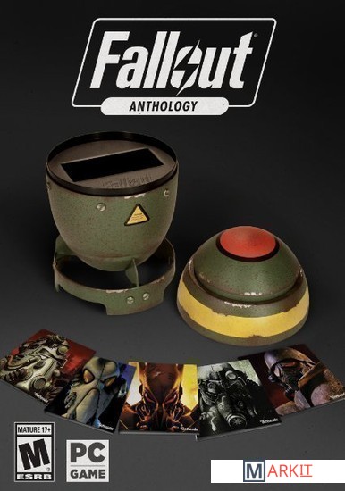 Антология Fallout включает в себя пять частей со всеми официальными дополнениями к ним, а именно Fallout 3: Game of the Year Edition, Fallout New Vegas: Ultimate Edition, Fallout Tactics, Fallout 2 и Fallout. Данная коллекция поставляется в эксклюзивном контейнере, оформленном в виде миниатюрного ядерного заряда и издающем характерный звук разрывающейся бомбы, причем в нем также заготовлено место и для диска с Fallout 4, так что лучшего подарка для фанатов Fallout просто не придумать.