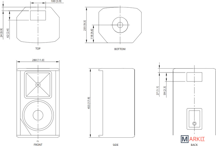 | Размеры колонок | 455 x 280 x 235 мм |