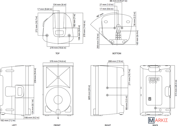| Размеры колонок | 609 х 370 х 370 мм |