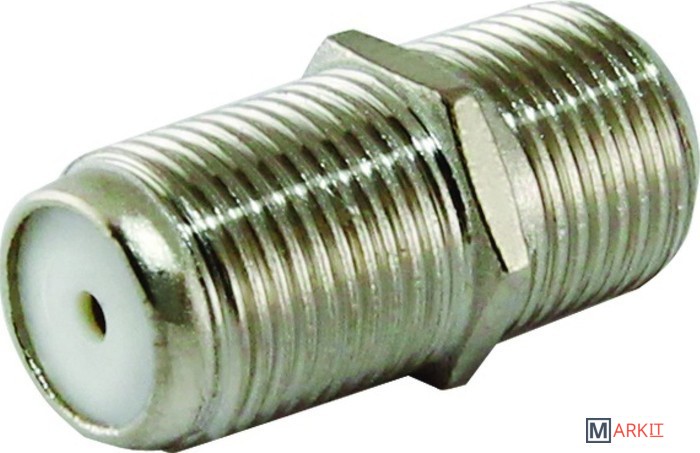 Переходник для соединения двух телевизионных кабелей типа RG-6, SAT-50, SAT-703 и других проводов, имеющих наружный диаметр 6.8 мм. Корпус и контакты переходника выполнены из никелированного сплава меди.