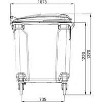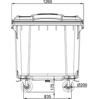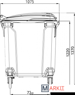 Макс. нагрузка 500 кгПредназначен для сбора бытовых и промышленных отходов. Дизайн, разработанный совместно с западными производителями и усиленная конструкция, делают контейнер отлично адаптированным для российских условий эксплуатации. Изготовлен из высококачественного первичного полиэтилена, что снижает риски эксплуатации в зимних условиях.ПреимуществаУсиленные цельнолитые 4 ручки по краям контейнераУсиленная 6-точечная конструкция узла крепления колесУсиленные цапфы с 9-точечным креплением.Усиленная конструкция места захвата гребенкойУсловия эксплуатацииТемпература -40° - +60°СТемпература чистки (мойки) до 95°С