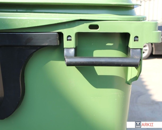 Макс. нагрузка 500 кгПредназначен для сбора бытовых и промышленных отходов. Дизайн, разработанный совместно с западными производителями и усиленная конструкция, делают контейнер отлично адаптированным для российских условий эксплуатации. Изготовлен из высококачественного первичного полиэтилена, что снижает риски эксплуатации в зимних условиях.ПреимуществаУсиленные цельнолитые 4 ручки по краям контейнераУсиленная 6-точечная конструкция узла крепления колесУсиленные цапфы с 9-точечным креплением.Усиленная конструкция места захвата гребенкойУсловия эксплуатацииТемпература -40° - +60°СТемпература чистки (мойки) до 95°С