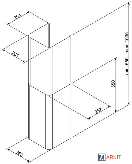 Воздуховод (2 шт).Размеры: (550min - 1035max) х 263 х 257 мм.