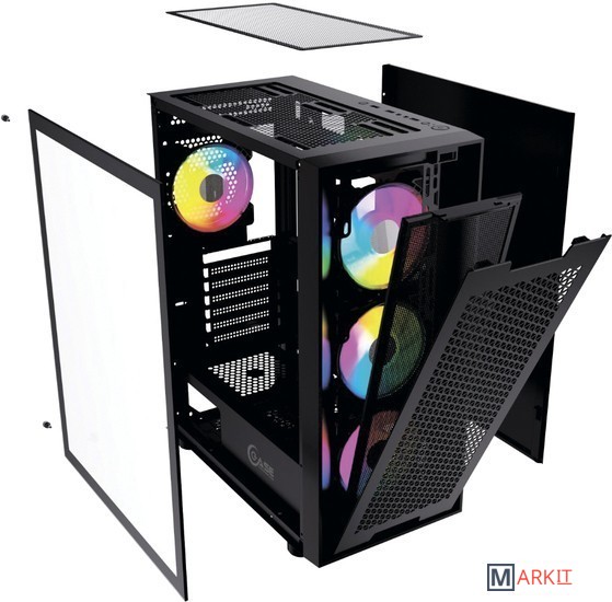 отключаемая LED подсветкабоковая панель из закаленного стеклав комплекте 4 х 120-мм LED-вентиляторатип материнской платы: ATX, Micro-ATX, Mini-ITX