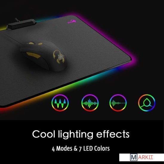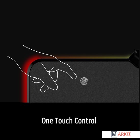 Данный коврик оснащен сканером отпечатка пальца, с помощью которого производится смена режимов подсветки.