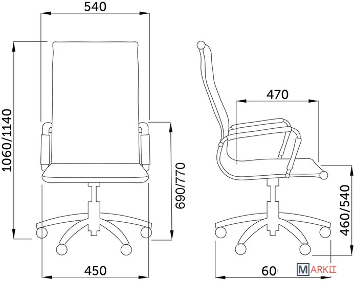 | Высота кресла | 106 — 114 см |