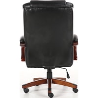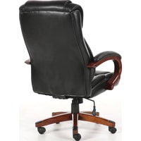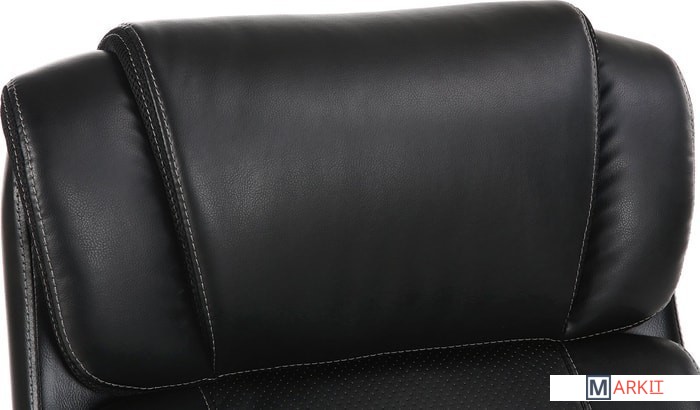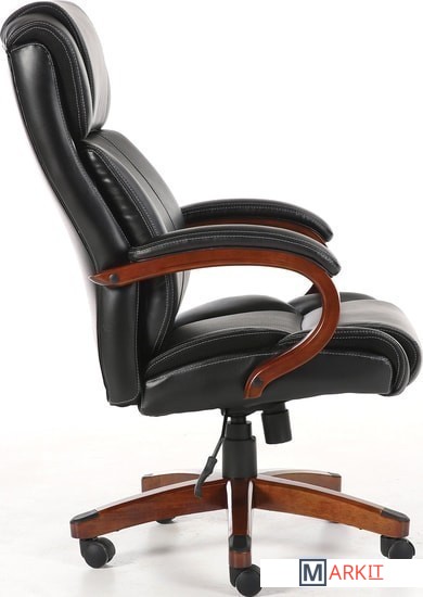 Обивка кресла выполнена из рециклированной кожи - современного материала, созданного из измельченных частиц натуральной кожи. По эластичности и прочности рециклированная кожа максимально близка к натуральной. Материал хорошо пропускает воздух, что положительным образом сказывается на комфорте во время эксплуатаци. Рециклированная кожа износоустойчива, кресло способно сохранять привлекательный внешний вид длительное время.Перфорация в центральной части кресла способствует дополнительной циркуляции воздуха.Плотная набивка, широкие деревянные подлокотники с мягкими накладками, высокая спинка и широкое сиденье с плотной набикой - просторные габариты обеспечивают великолепную эргономику данной модели.Сочетание рециклированной кожи с контрастной отстрочкой и деревянных элементов без сомнений подчеркнут статус своего владельца.