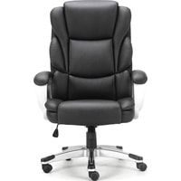 Высокая спинка с широким мягким подголовником и боковой поддержкой выводят эргономику кресла на новый уровень.Обивка выполнена из экокожи высокого качества - современного материала на хлопковой основе. Благодаря тканой основе и пористому полиуретану экокожа отлично пропускает воздух, что положительным образом сказывается на комфорте во время эксплуатации. Материал износоустойчив - кресло сохранит привлекательный внешний вид в течение длительного времени.Наличие перфорации в центральной части кресла обеспечивает дополнительную циркуляцию воздуха.Помимо плотной набивки в сиденье кресла встроен пружинный блок - конструкция из стальных независимых пружин, предназначенная для лучшей амортизации. Благодаря пружинным блокам мебель «не проседает» в процессе эксплуатации, комфортна и функциональна. Также в набивке использован поролон высокой плотности - это обеспечивает оптимальную поддержку пользователя и препятствует "проминанию" сиденья в ходе эксплуатации.Прочные пластиковые подлокотники имеют мягкие накладки.Надежный механизм качания "Top Gun" обеспечивает хорошую поддержку спины и поясницы за счет возможности свободного качания с фиксацией в одном рабочем положении и регулировку угла наклона под вес сидящего.