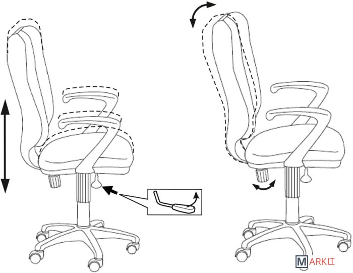 | Регулируемый наклон спинки | (пружинно-винтовой механизм качания спинки) |