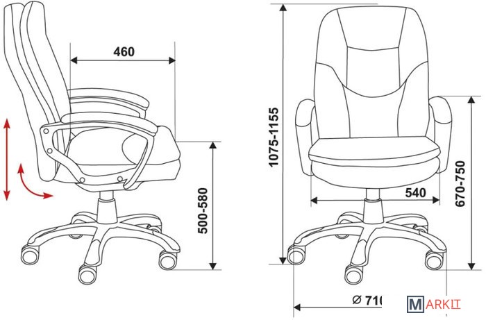 | Регулируемый наклон спинки | ✘ |