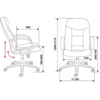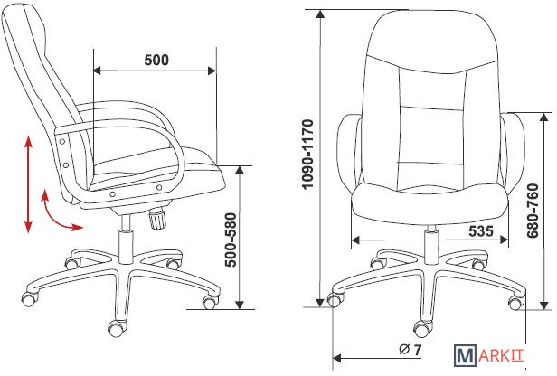 Кожаное кресло руководителя- механизм качания с регулировкой под вес и фиксацией в вертикальном положении- регулировка высоты (газлифт)Материал обивки: Кожа/Искусственная кожа.Ограничение по весу: 120 кг.