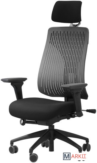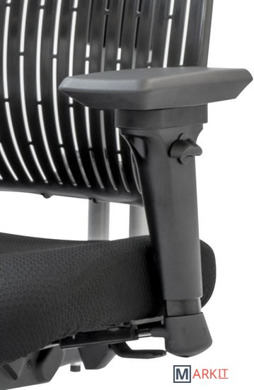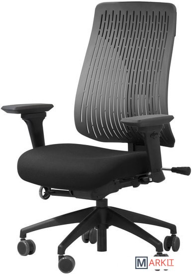 Регулировка спинки:по высоте - храповый механизм (зубчатый) на основе возвратно-вращательного движения; поясничное натяжение (при помощи ручки); наклон и фиксация от 0 до 45°.Спинка изготовлена по новой технологии из эластичного многослойного полимерного материала.