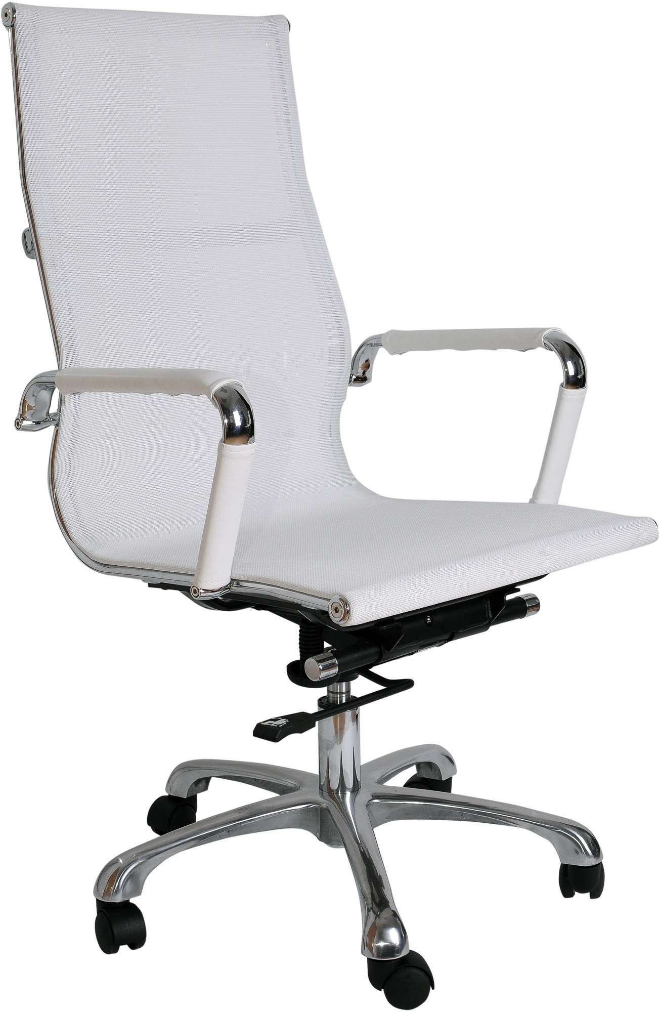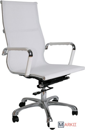 Кресло выполнено из специального мебельного материала (акриловая сетка), который принимает форму тела сидящего и позволяет часами работать не чувствуя усталости. Кресло снабжено хромированными подлокотниками с мягкими накладками. В кресле используется современный механизм с хромированными вставками, который позволяет не только качаться, но и производить фиксацию изделия в любом положении. Также механизм позволяет регулировать жесткость качания в зависимости от веса сидящего. Кресло снабжено изящной хромированной крестовиной и хромированным газ-лифтом, с помощью которого регулируется высота. Может комплектоваться полиуретановыми роликами для паркета и ламината, а также изящными хромированными роликами.