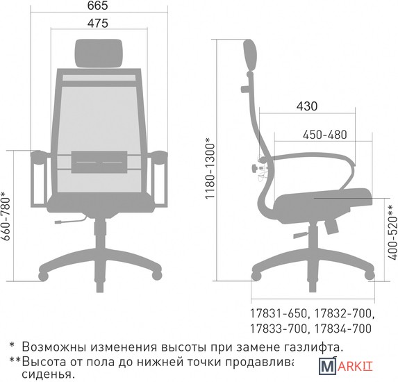 | Глубина сиденья | 45 — 48 см |