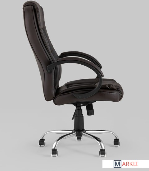 Современное и функциональное компьютерное кресло. Удобная спинка оказывает качественную поддержку и позволяет провести в кресле долгое время без усталости. Обивка выполнена из качественной экокожи. Комфортное положение легко выбрать благодаря механизму регулировки высоты и качания Top Gun.Металлический каркас выдерживает нагрузку до 120 кг.
